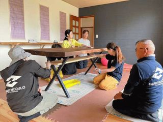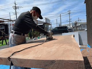 また、無事完成を迎えるお祝いとして、弊社社長から8人用のテーブルをオーナー様へプレゼントさせていただきました。