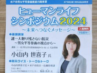 今月9月1日「防災の日」に水戸市民会館で開催された、ヒューマンライフシンポジウム2024~ミライへつなぐメッセージ~に参加してまいりました。