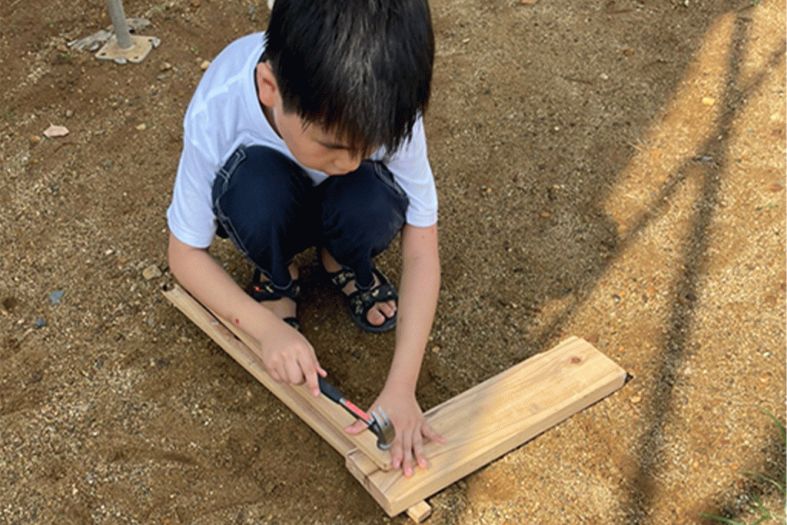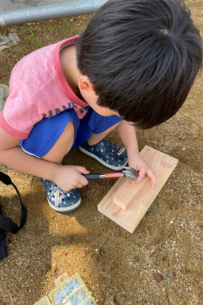 お庭ではちびっこ大工さんが一生懸命何かを作っていました♪