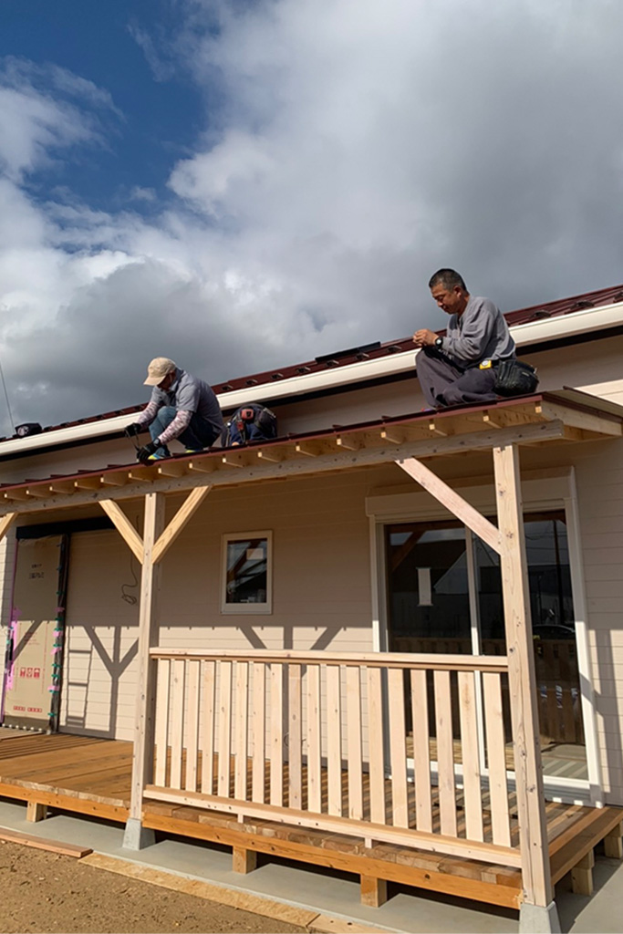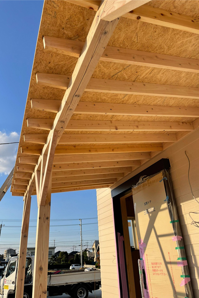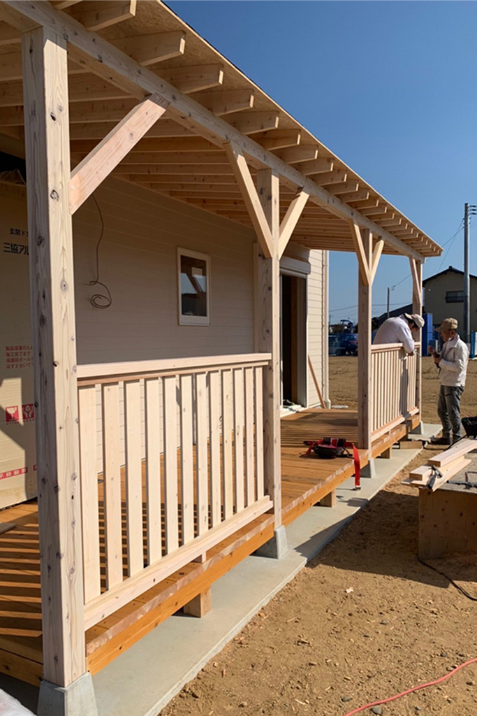 JタウンS様邸、いよいよカバードポーチ(屋根のあるデッキのこと)施工開始しました。